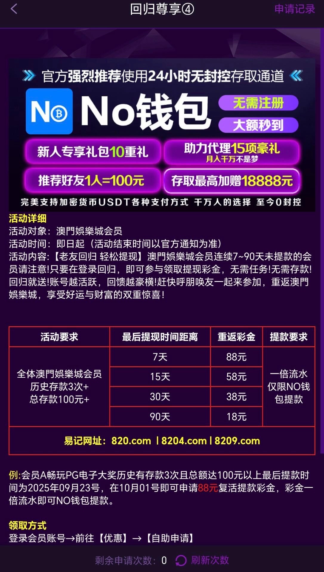 历史存款3次以上且总额100以上才能领,具体看图,符合的兄弟去申请彩金