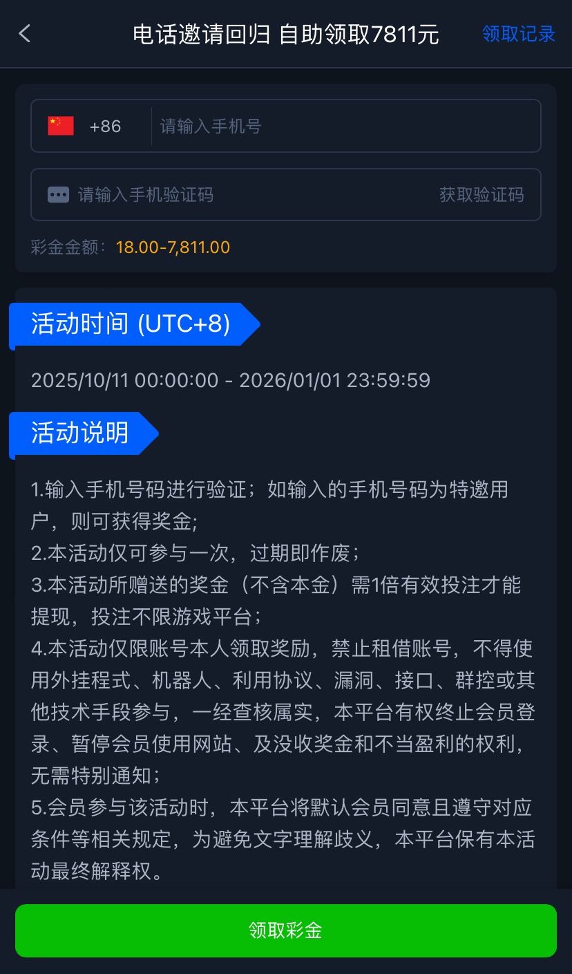 有号的兄弟登入上去优惠里自助领取看看自己是不是回访