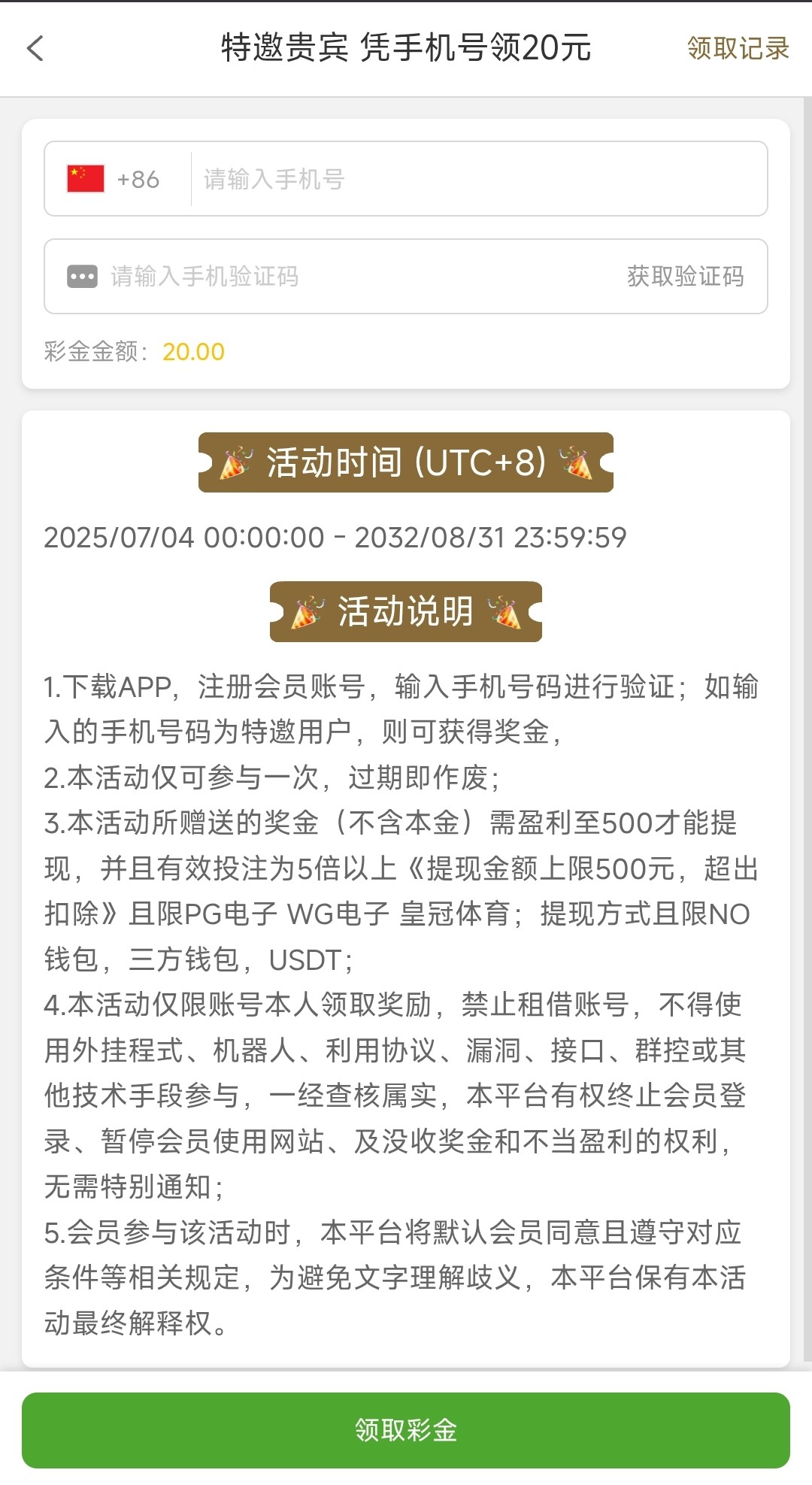 没有注册过这个平台的哥们可以碰瓷试试注册好账号在优惠新人最下面,需要盈利至500才能出款,仅限NO钱包/第三方钱包/USDT提款,仅限PG电子/WD电子/皇冠体育,提款上限500